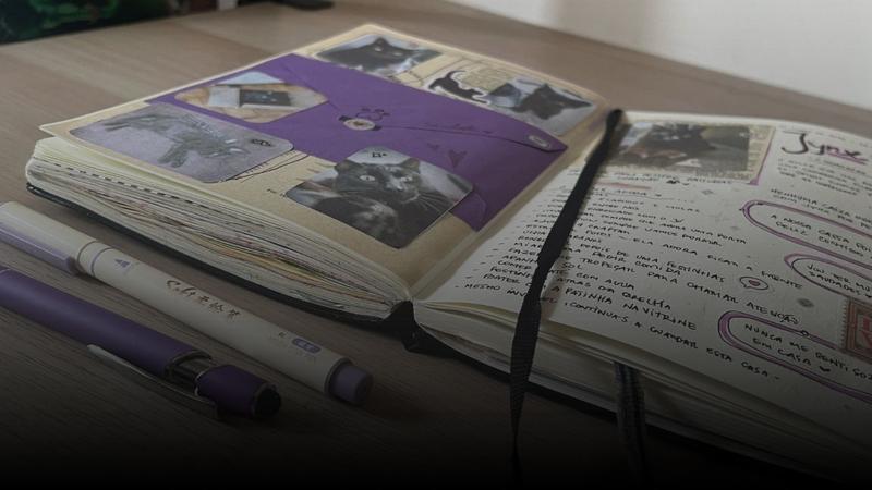 Nos últimos dias encontrei também conforto ao dedicar algumas páginas do meu caderno ao Jynx. Entre colagens, pequenas memórias, fotografias e frases, vou guardando pedaços da história dele. Não é uma forma de “fechar” o luto, mas sim uma maneira de transformar a saudade em memória viva. Cada página torna-se um pequeno gesto de carinho, uma forma silenciosa de agradecer pelos anos de companhia que tivemos.
